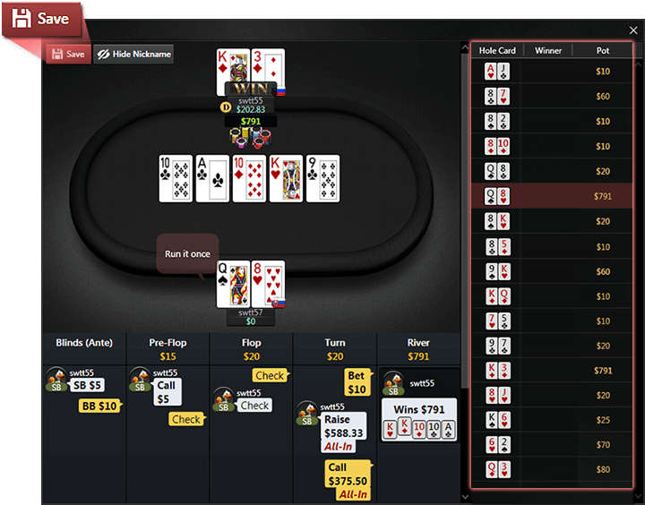 在您的扑克之旅,每一个底牌都可以通过战绩查看并导出底牌时刻。